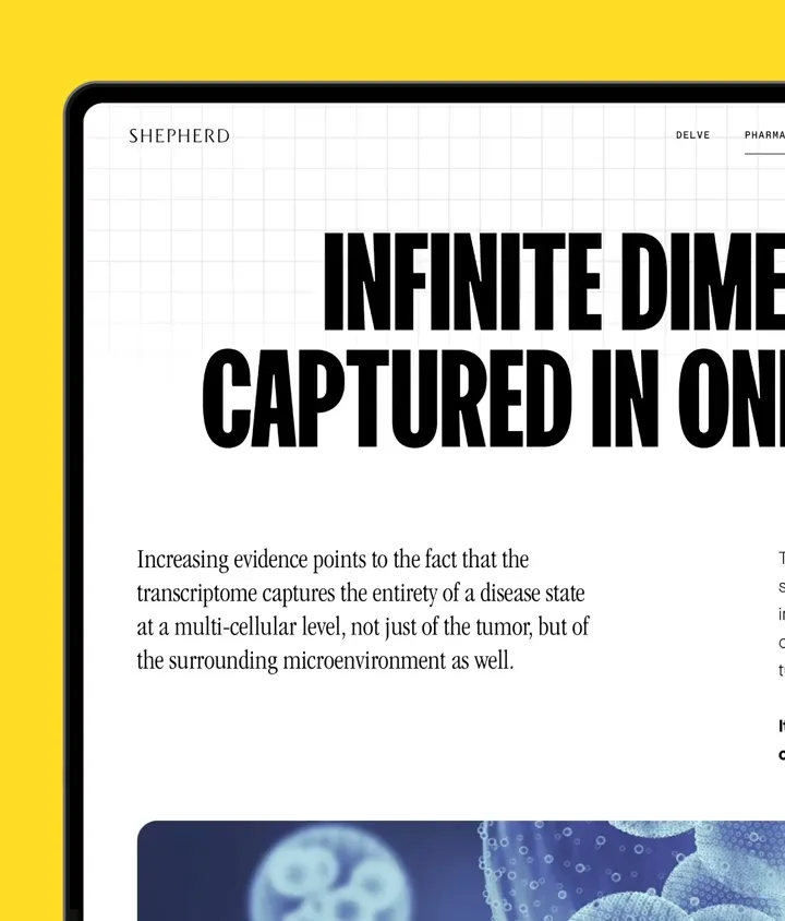 ]Shepherd Therapeutics is a personalized cancer care company focused on making advanced treatment options more accessible and understandable for patients. Unlike traditional biotech brands that target physicians and clinical stakeholders, Shepherd wanted to position itself as a consumer-facing brand—speaking directly to patients and families navigating complex diagnoses. They approached Wheelhouse to bring this vision to life, helping define their brand strategy, visual identity, digital experience, and product UI for their proprietary AI platform, Delve.